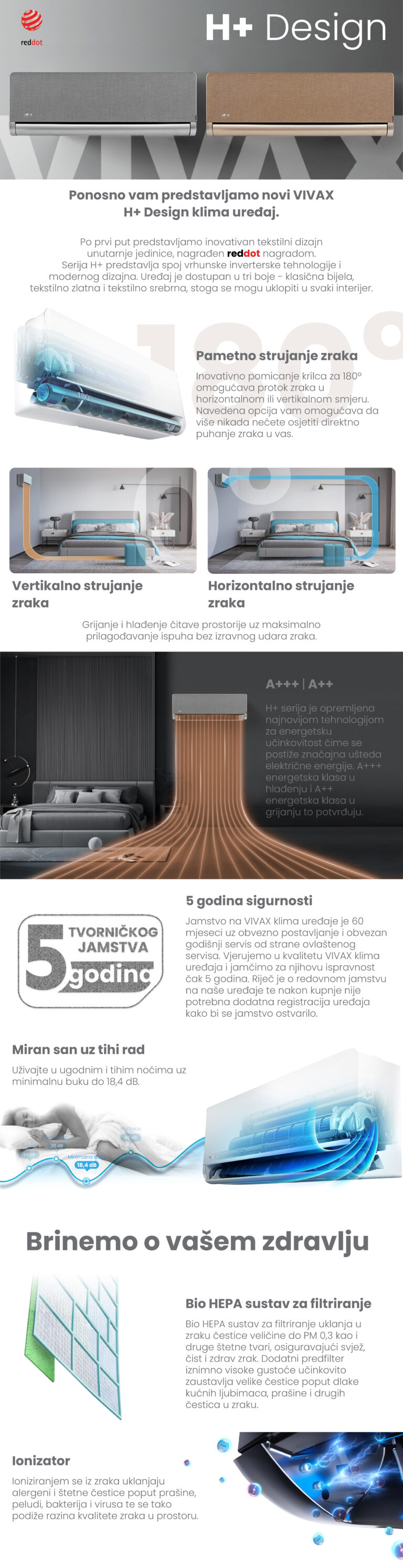 30.5.2025. Vivax H+ Design klima uređaj Inovativan tekstilni dizajn nagrađen reddot nagradom Ponuda modela ovdje