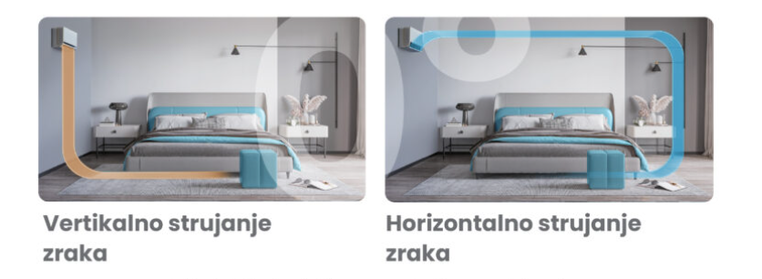 Funkcija pametnog puhanja zraka zahvaljujući inovativnoj tehnologiji pomicanja krilca za 180 stupnjeva, topli zrak usmjerava vertikalno prema dolje, zatim se ugrijani zrak prirodno podiže prema gore ravnomjerno ispunjavajući prostoriju toplinom. U slučaju hlađenja, hladni zrak H+ klima ispuhuje horizontalno uz strop, a zatim zrak prirodno pada dolje osiguravajući ravnomjerno hlađenje prostora. Na taj način izbjegava se neugodno direktno puhanje, a ujedno se postiže stabilna i ugodna temperatura u cijelom prostoru uz manju potrošnju energije.