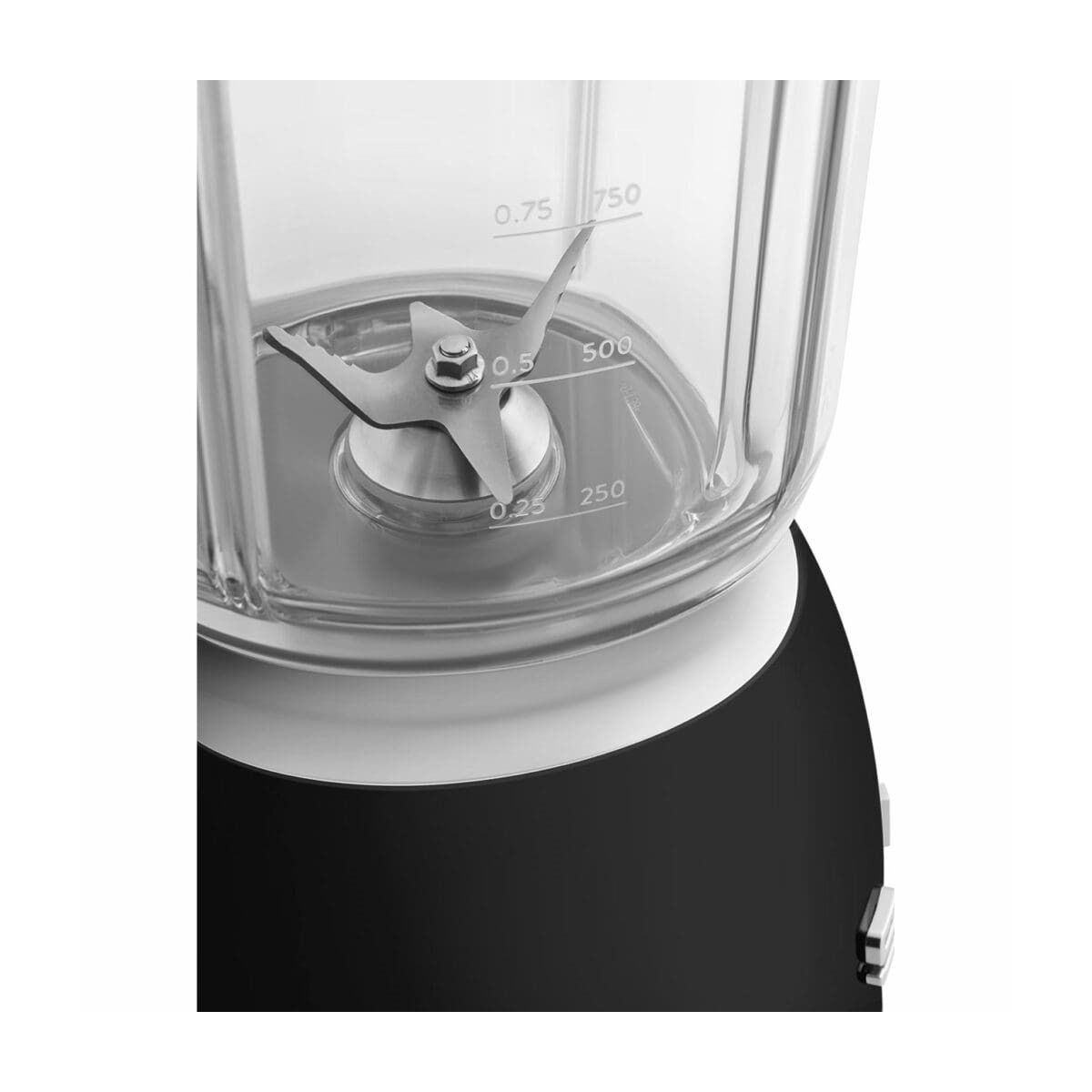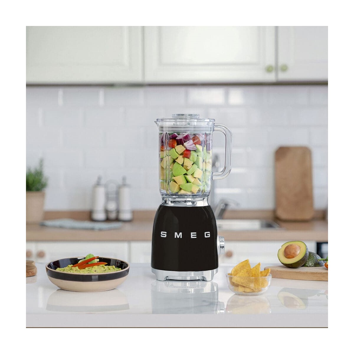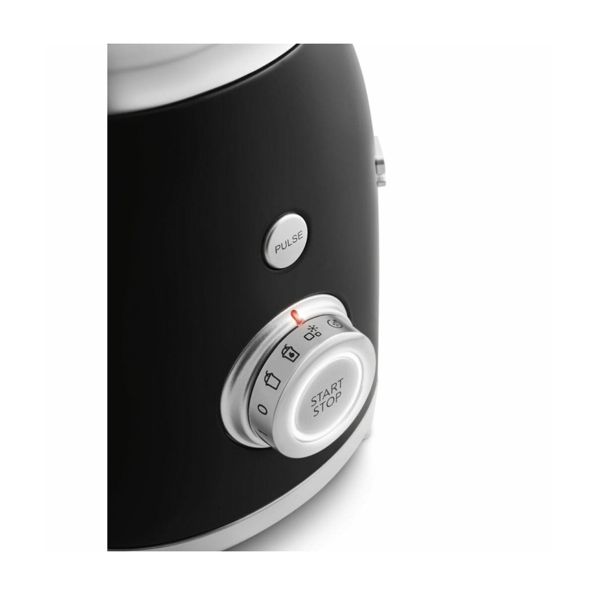 Blender SMEG BLF03BLEU s četiri razine brzine, za optimalne performanse, čak i s malim količinama hrane. Smoothie, Green Smoothie i Ice-Crush: tri unaprijed postavljena programa za idealan konačni rezultat. 50`s Style