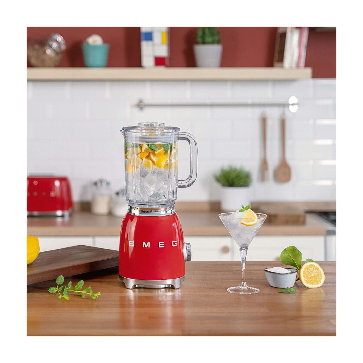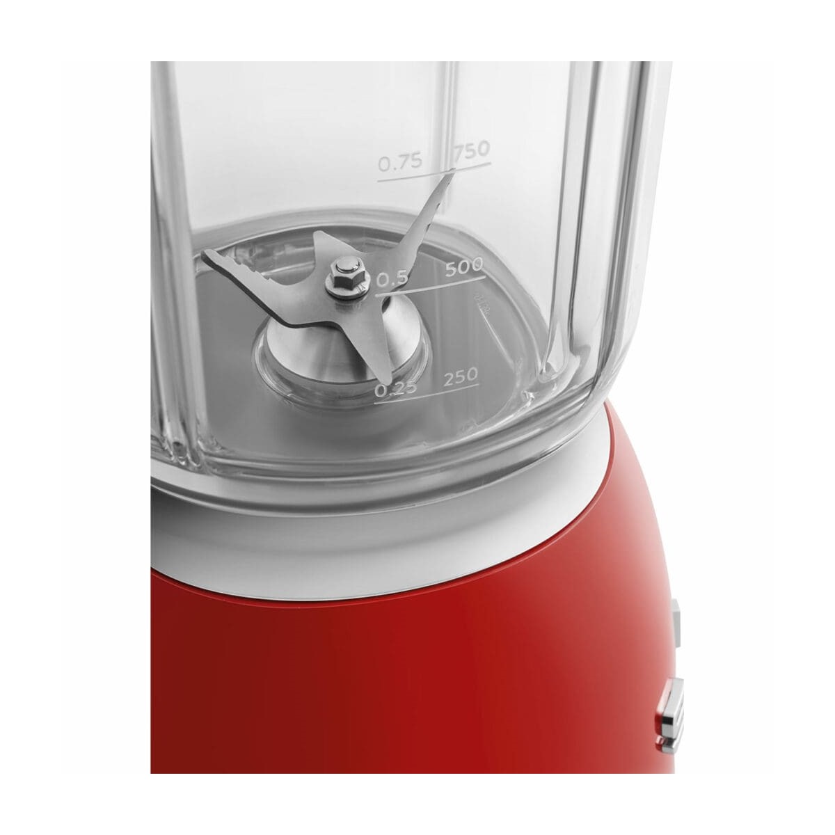Blender SMEG BLF03RDEU s četiri razine brzine, za optimalne performanse, čak i s malim količinama hrane. Smoothie, Green Smoothie i Ice-Crush: tri unaprijed postavljena programa za idealan konačni rezultat. 50`s Style