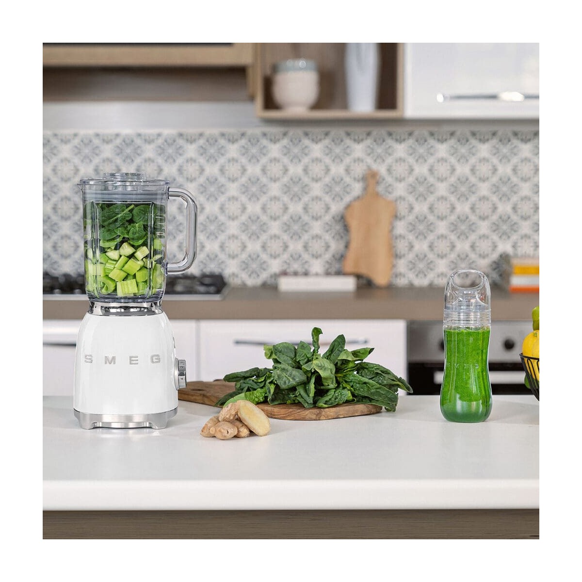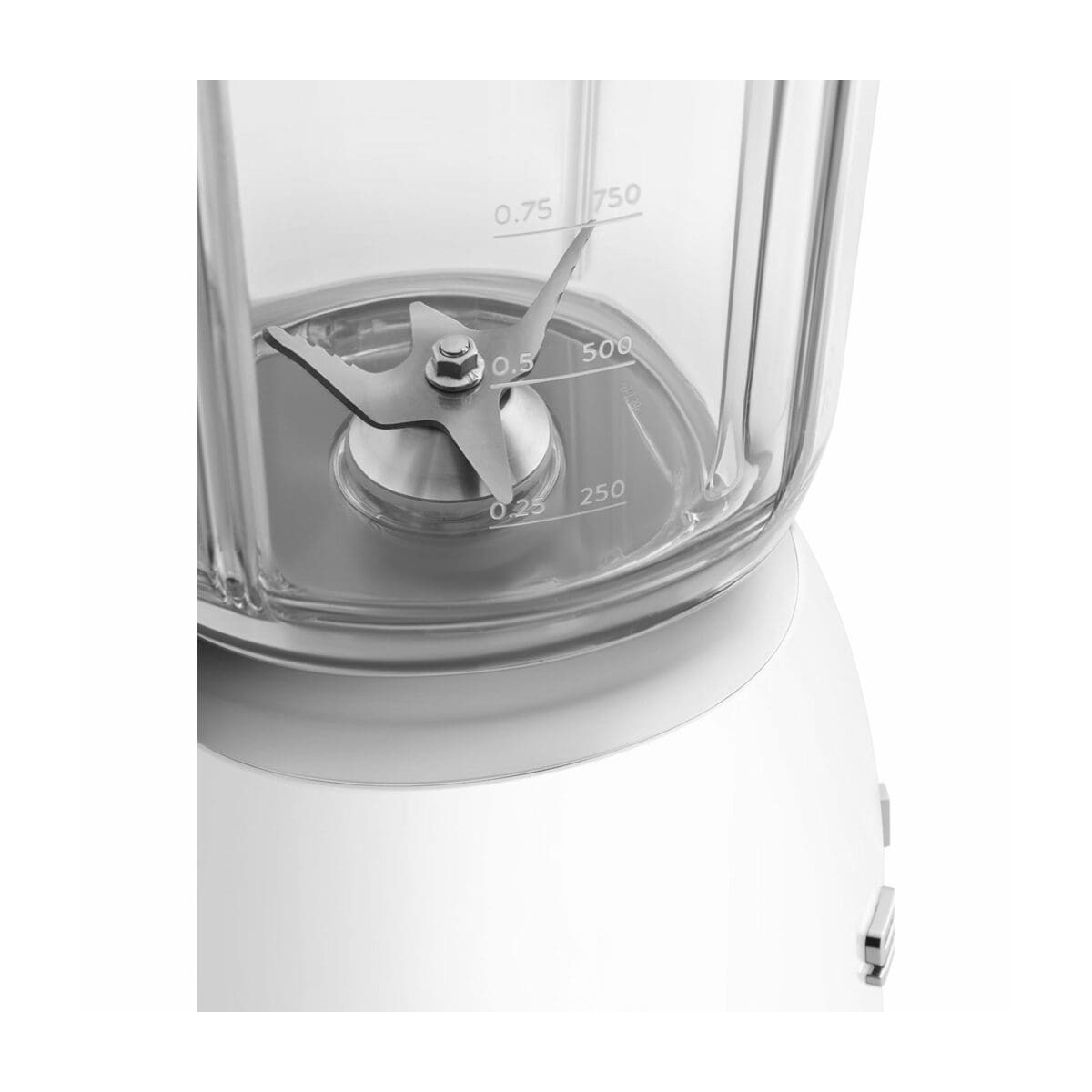 Blender SMEG BLF03WHEU s četiri razine brzine, za optimalne performanse, čak i s malim količinama hrane. Smoothie, Green Smoothie i Ice-Crush: tri unaprijed postavljena programa za idealan konačni rezultat. 50`s Style