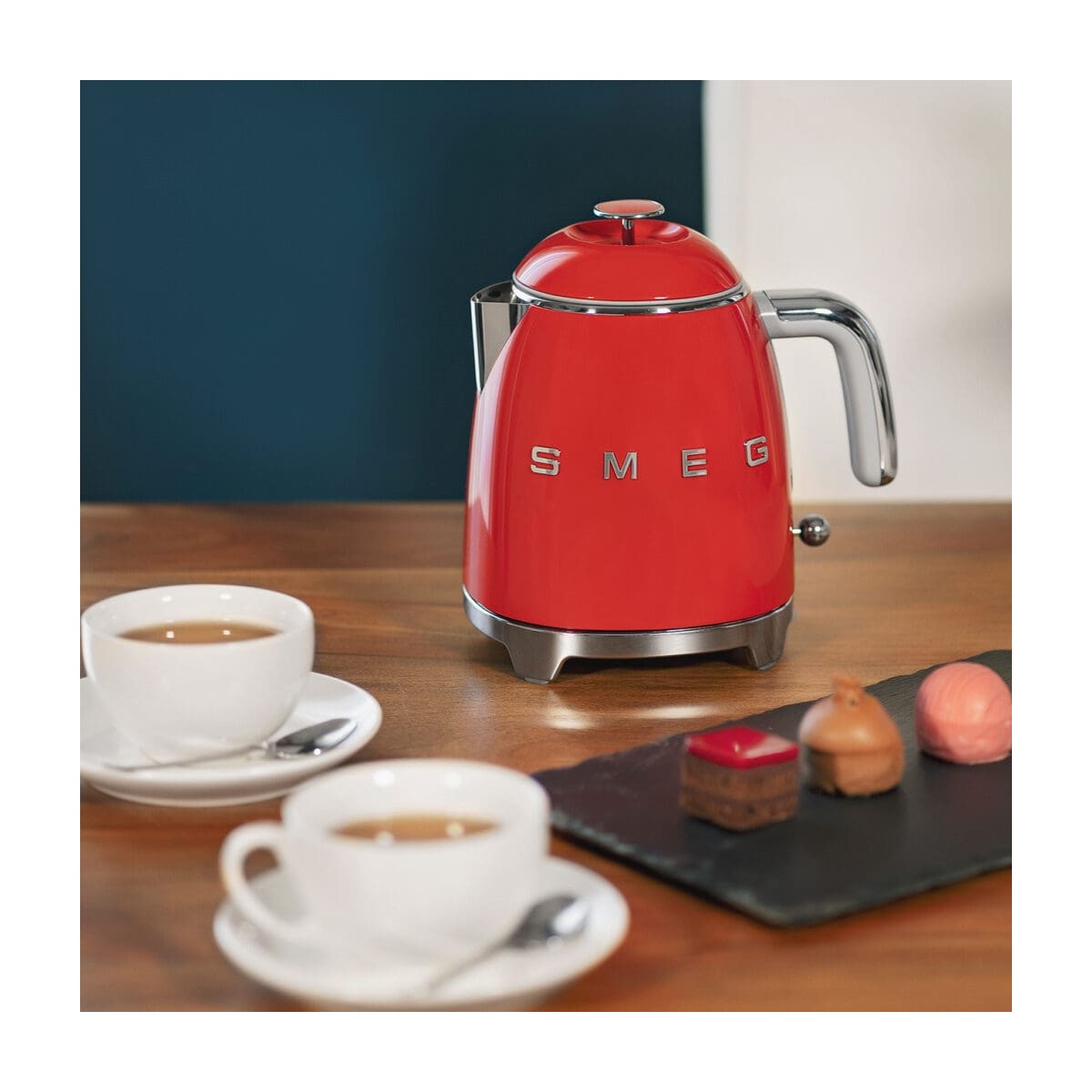 Električno kuhalo za vodu SMEG KLF05RDEU zapremnine od 0,8l je kompaktno i funkcionalno, idealno za svaki prostor. Praktično i jednostavno rukovanje zahvaljujući okretnoj bazi od 360°C. 50`s Style.