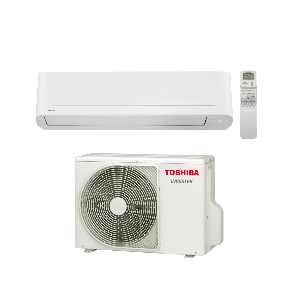 Klima uređaj Toshiba Seiya Inverter 6.5 kW sastoji se od unutarnje jedinice oznake RAS-24E2KVG-E, vanjske jedinice RAS-24E2AVG-E i infracrvenog daljinskog upravljača.