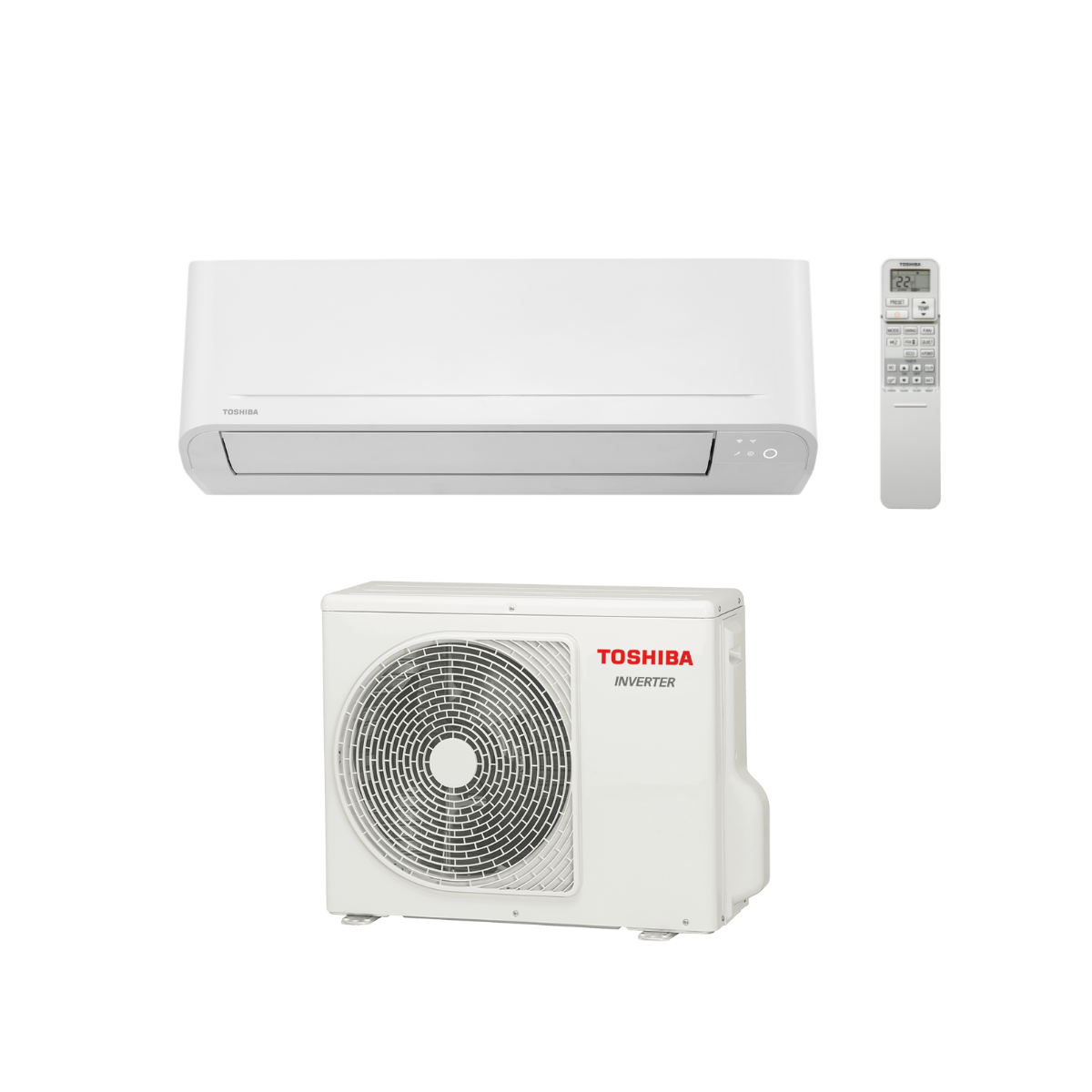 Klima uređaj Toshiba Seiya Inverter 3.3 kW sastoji se od unutarnje jedinice oznake RAS-B13E2KVG-E, vanjske jedinice RAS-13E2AVG-E i infracrvenog daljinskog upravljača.