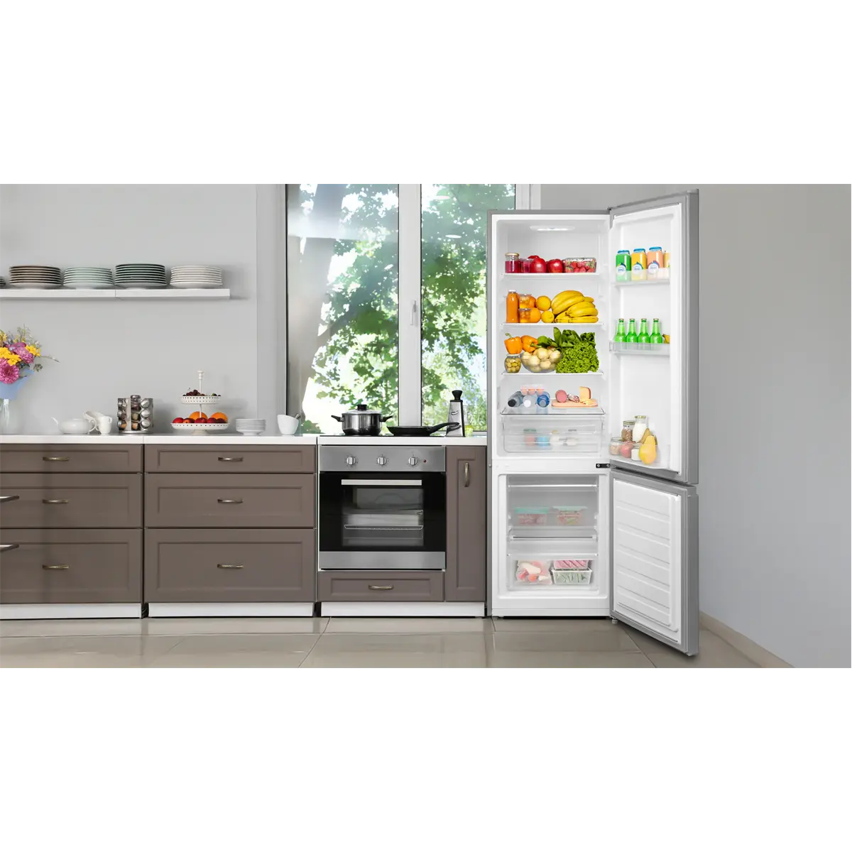 Korisna zapremnina hladnjaka od 197 l i neto zapremnina zamrzivača od 65 l pruža dovoljno prostora i za potrebe veće obitelji. Police izrađene od čvrstog kaljenog stakla i prozirna ladica za voće i povrće omogućuju mnoštvo kombinacija spremanja namirnica. Prozirna preklopna vrata zamrzivača olakšavaju snalaženje među zamrznutim namirnicama.