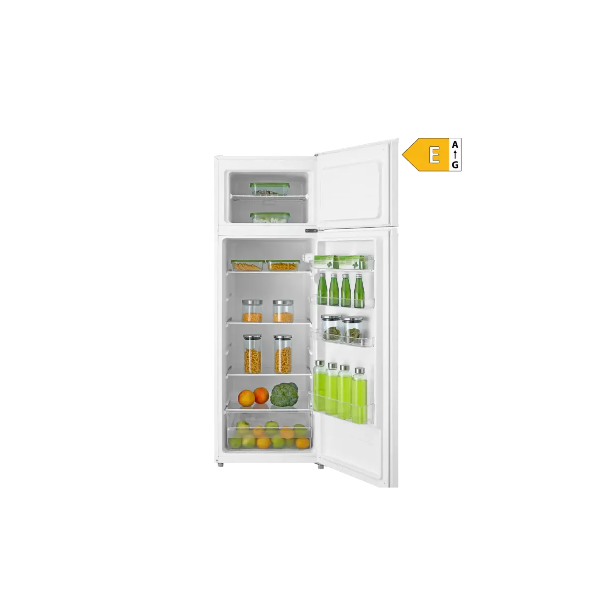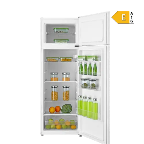 VIVAX hladnjak sa zamrzivačem DD-235E W je stariji brat najpopularnijeg model DD-207E! Ako vam je potreban hladnjak s zamrzivačem s dvoje vrata, a ujedno trebate više prostora, DD-235E W je idealan odabir. Veliki hladnjak s odvojenim zamrzivačem ukupnog kapaciteta od 235 L, dovoljan je i za veću obitelj. Osim što je štedljiv u potrošnji energije, zauzima i vrlo malo prostora. zapremnina hladnjaka od 194 L s ukupno četiri staklene police osigurava svježinu namirnica i produljuje vrijeme njihovog korištenja dok ladica u dnu hladnjaka pruža mogućnost odvajanja svježeg voća i povrća od ostatka namirnica.
