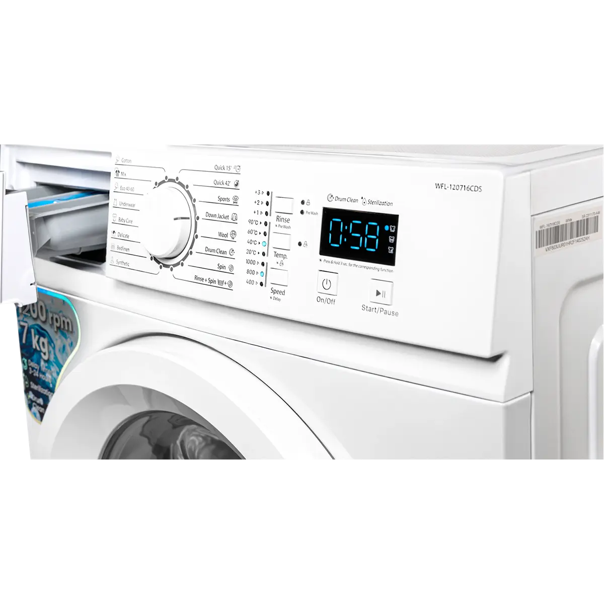 VIVAX Inverter perilica rublja WFL-120716CDS vrhunska je perilica rublja koja se odlikuje jednostavnošću uporabe i vrhunskom učinkovitošću potrebnoj svakoj obitelji.