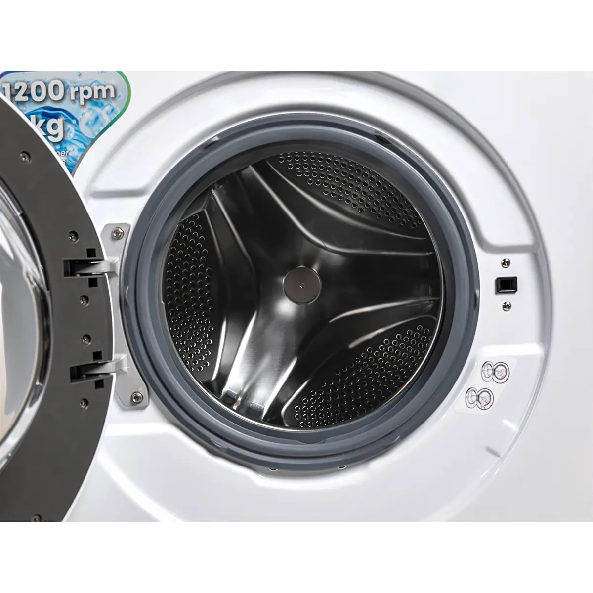 Ima kapacitet bubnja od 7 kg, s velikim vratima, 1200 okretaja centrifuge i lako razumljivim LED zaslonom i dodatnim funkcijama.