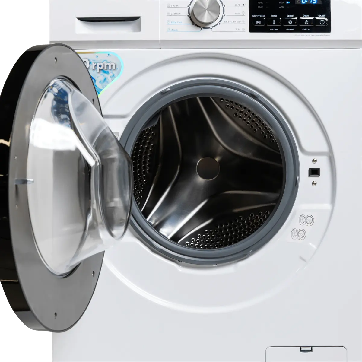 Ima kapacitet bubnja od 7 kg, s velikim vratima i 1400 okretaja centrifuge.