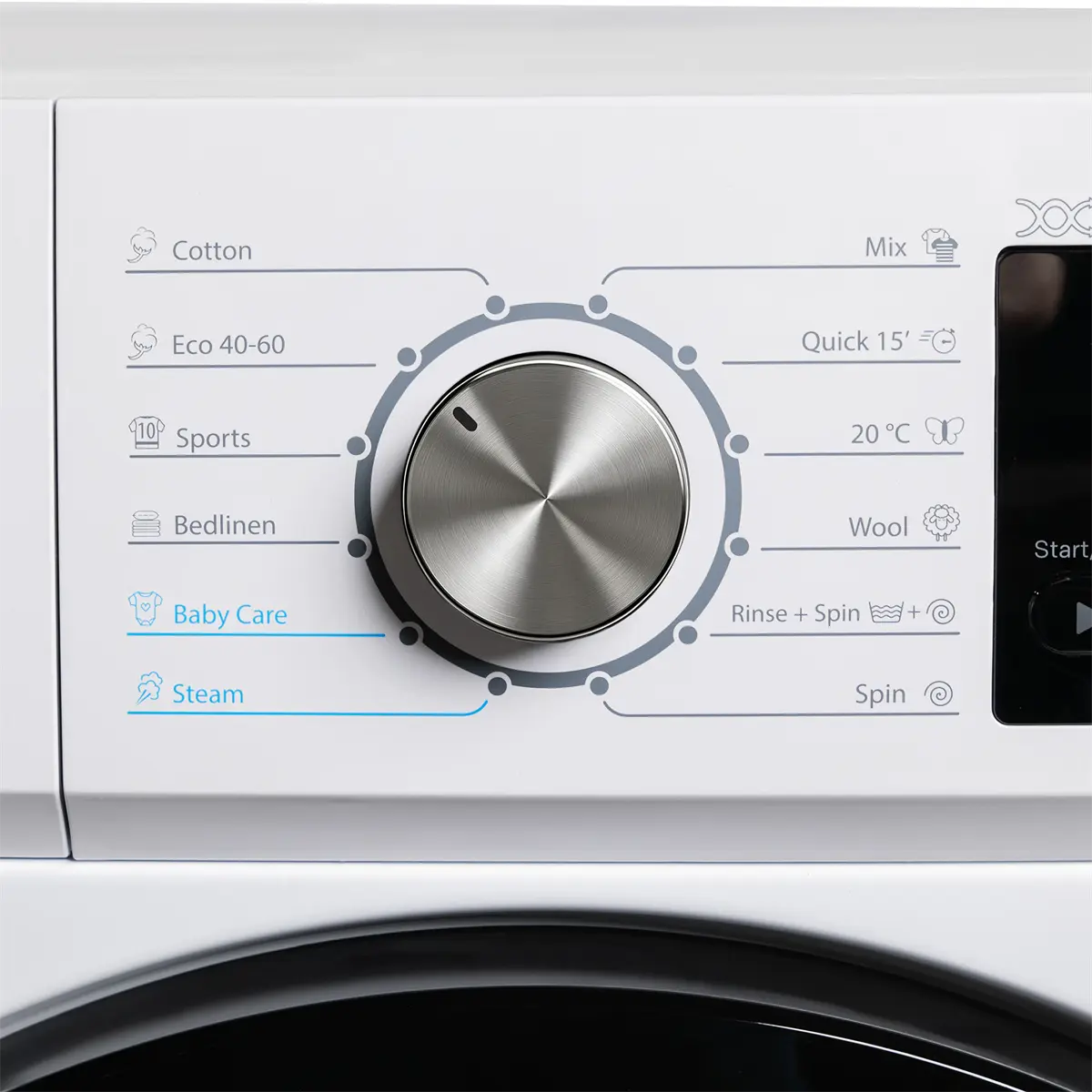 Funkcija sterilizacije bubnja pridonosi svježini i čistoči rublja. Kontrolna ploča perilice rublja s centralno smještenim okretnim gumbom za odabir programa i veliki zaslon pomažu da se u svega tri jednostavna koraka pokrene proces pranja.
