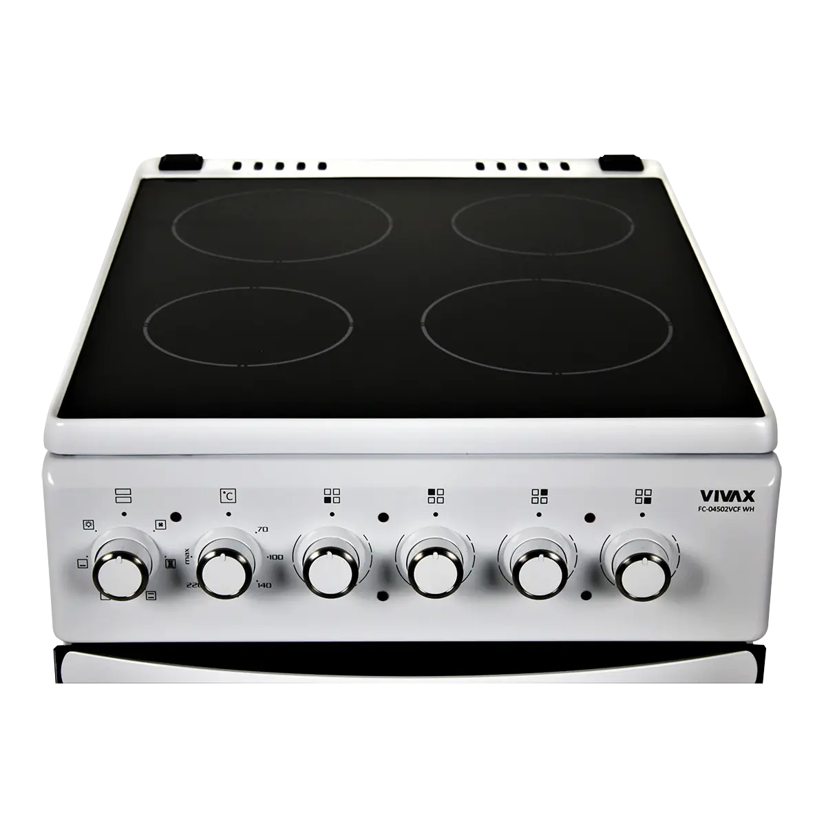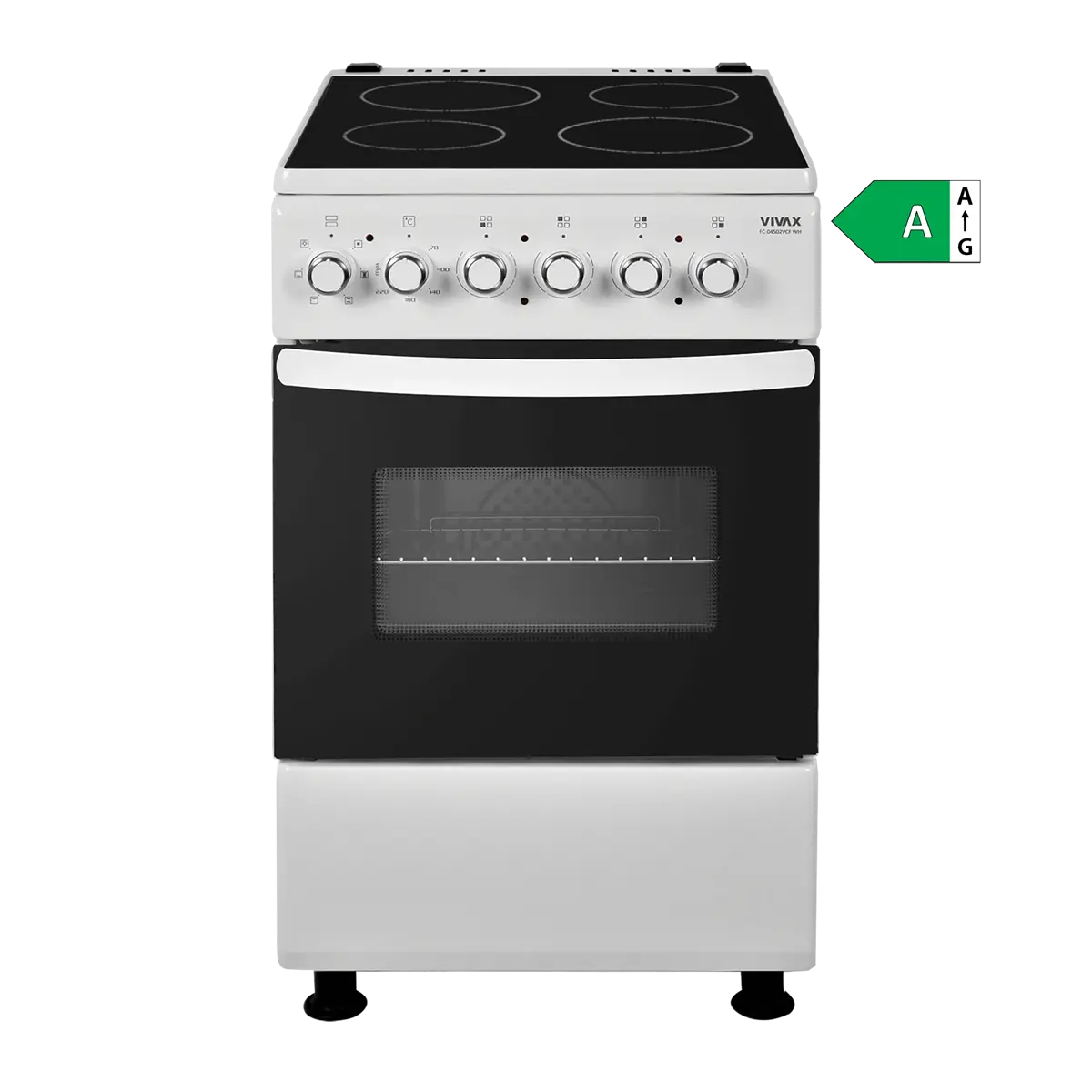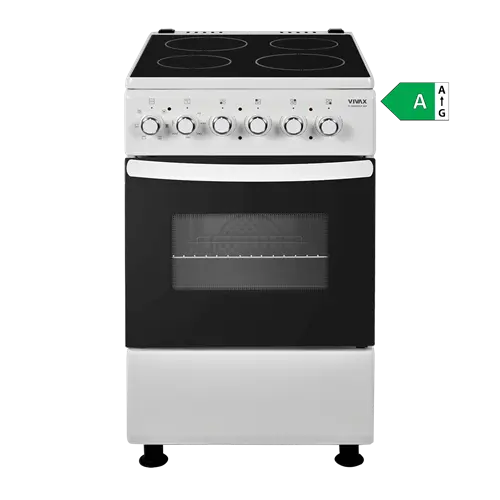 VIVAX samostojeći štednjak FC-04502VCF WH je vrhunski model električnog štednjaka s četiri vitrokeramičke grijaće ploče.