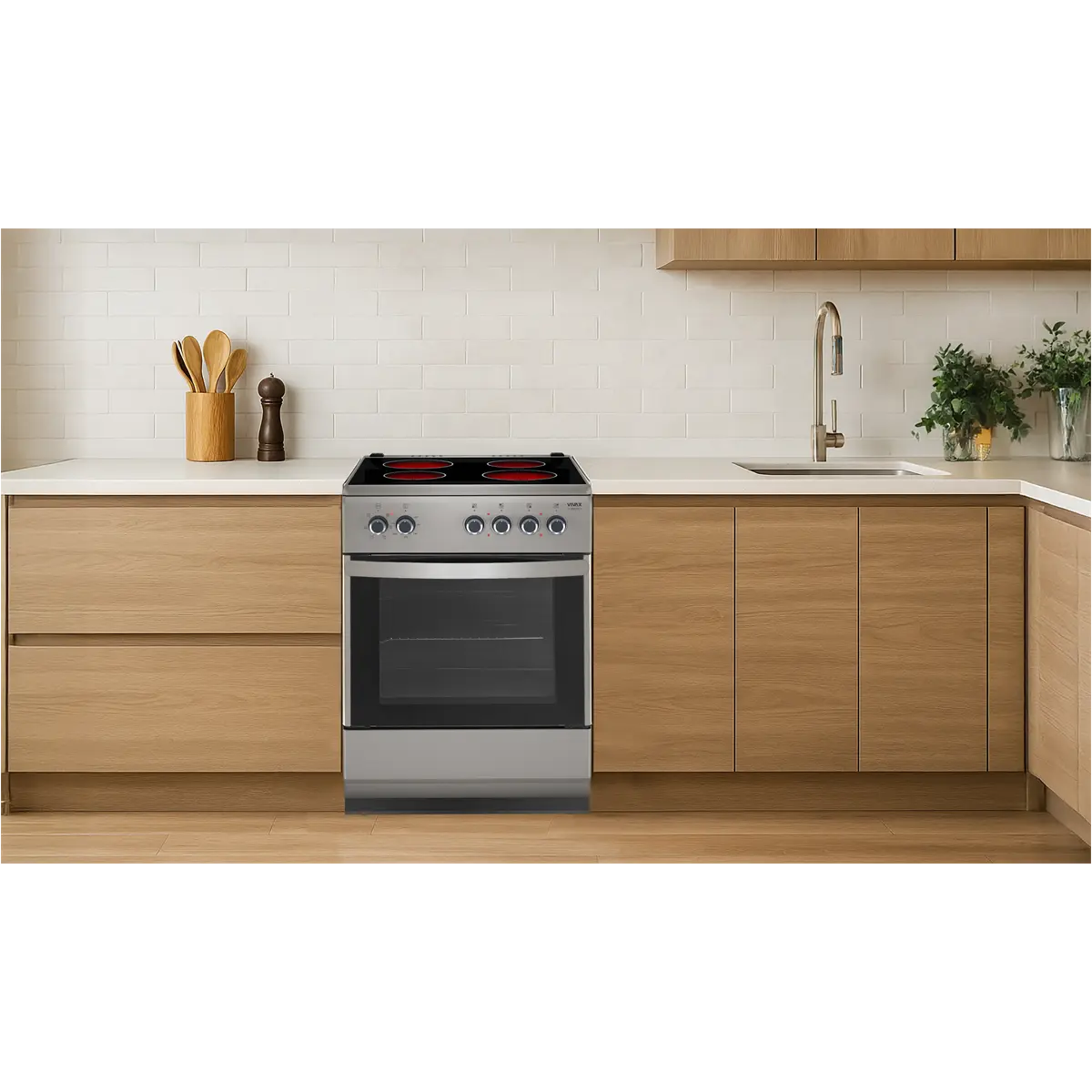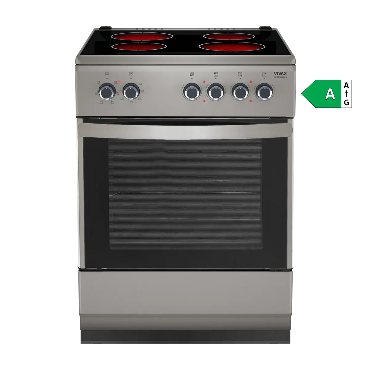 VIVAX samostojeći štednjak FC-04602VCF S je vrhunski model električnog štednjaka s četiri vitrokeramičke grijaće ploče.