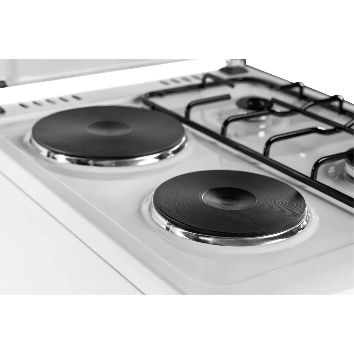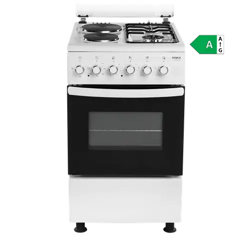 FC-22502 WH je samostojeći plinsko-električni štednjak s dvije strujne grijače ploče i dva plinska plamenika.