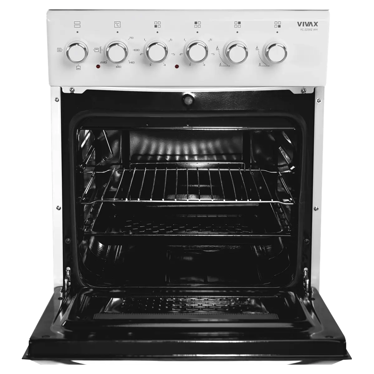 VIVAX samostojeći štednjak FC-22502 WH idealan je odabir za vašu kuhinju jer osvaja modernim izgledom i jednostavnim korištenjem.