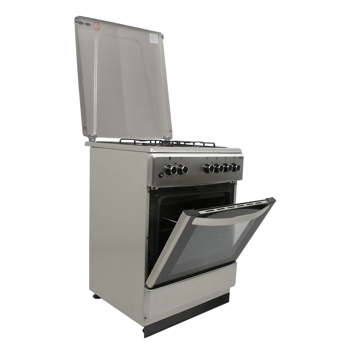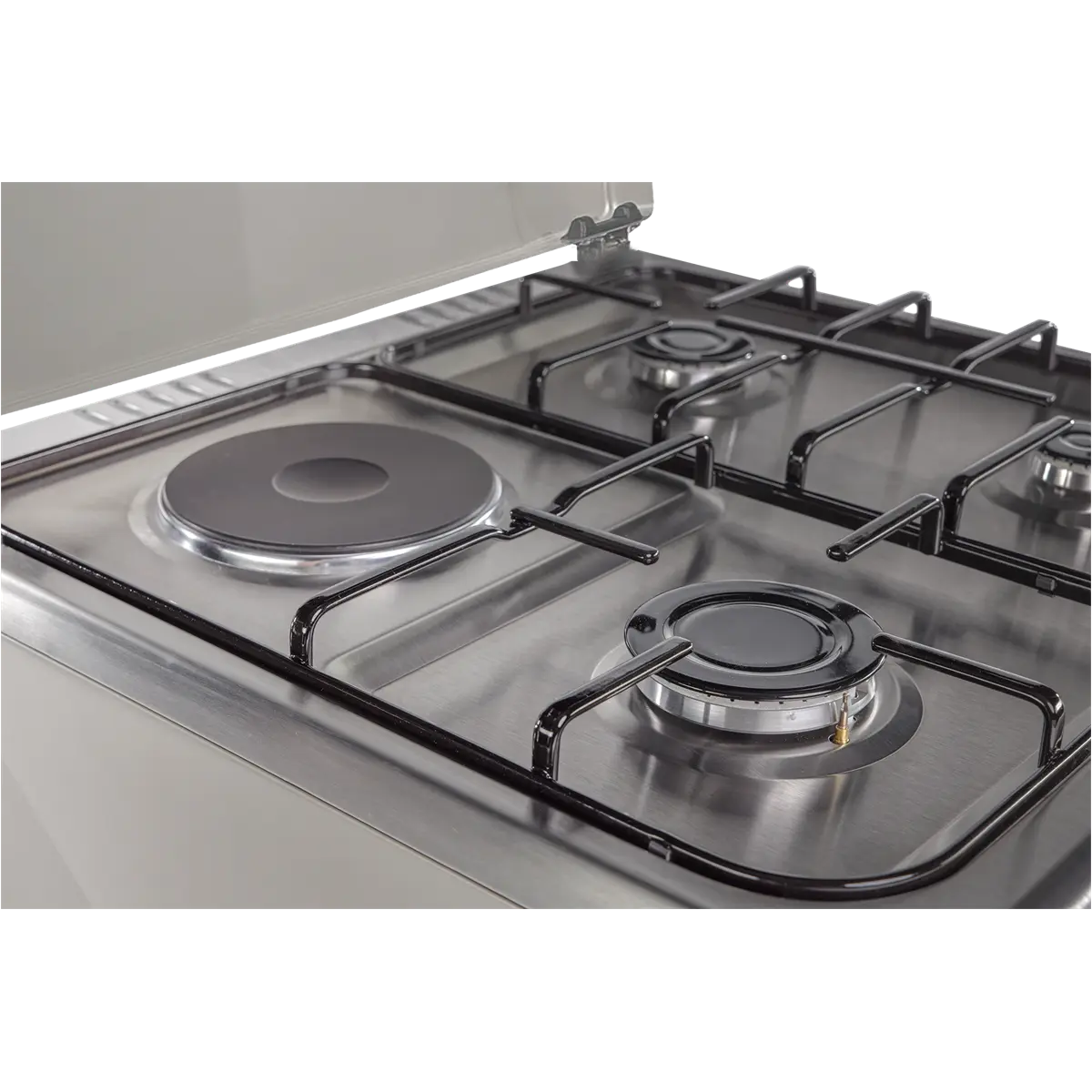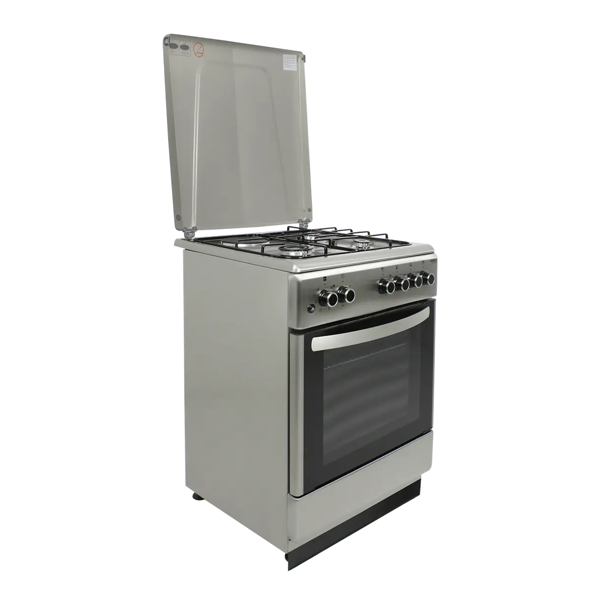 VIVAX samostojeći štednjak FC-31602IF X je plinsko-električni model štednjaka s jednom strujnom grijačom pločom i tri plinska plamenika. Plinski plamenici opremljeni su zaštitnim sklopom protiv neželjenog istjecanja plina, a paljenje plamenika vrši se pritiskom na tipku za davanje iskre.