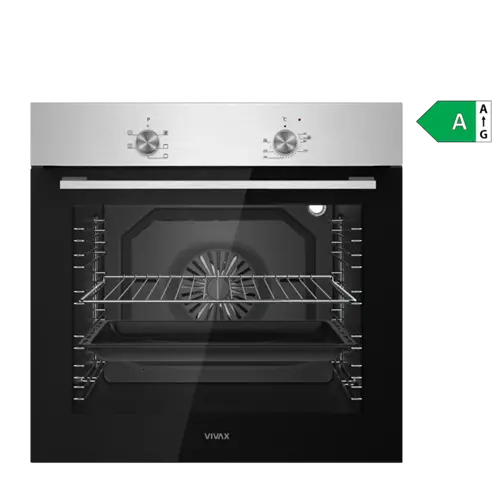 VIVAX ugradbena pećnica BO-806BFM X svojim velikim volumenom od 80l zadovoljava potrebe i većih obitelji. Ima 5 programa pečenja - osim klasičnog programa zagrijavanja gornjeg te donjeg grijača, tu je i funkcija pečenja s ventilatorom što omogućuje ravnomjernije i brže pečenje, te pečenje u više razina.