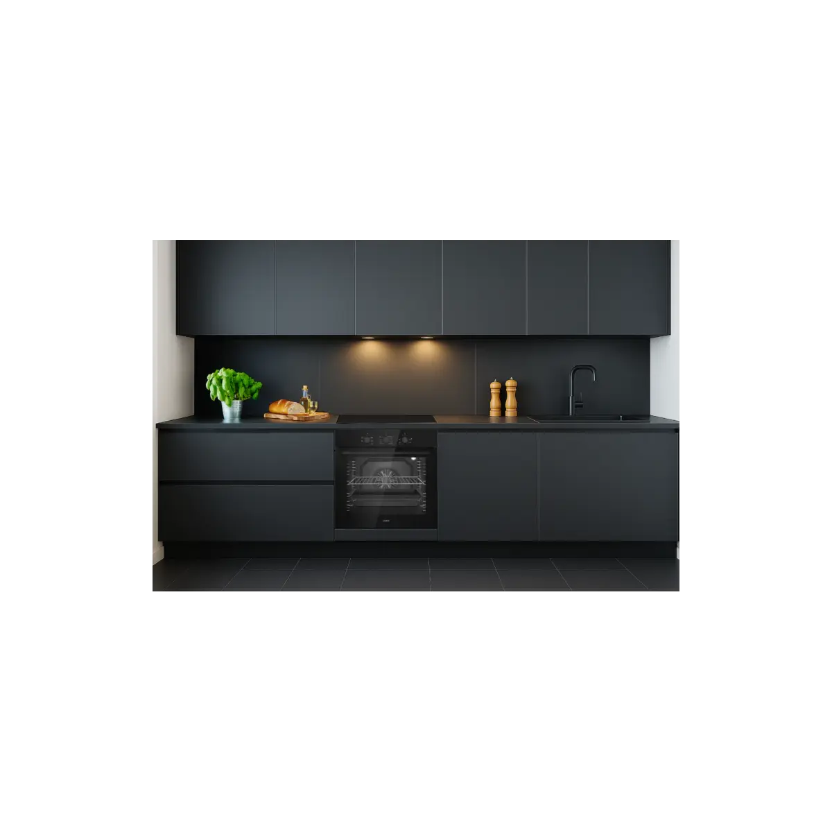 Kontrolna ploča i vrata su u izvedena u tamnom staklu i čine pećnicu elegantnom i profinjenom. Gumbi su na "push" sustav, što znatno olakšava čišćenje i održavanje.