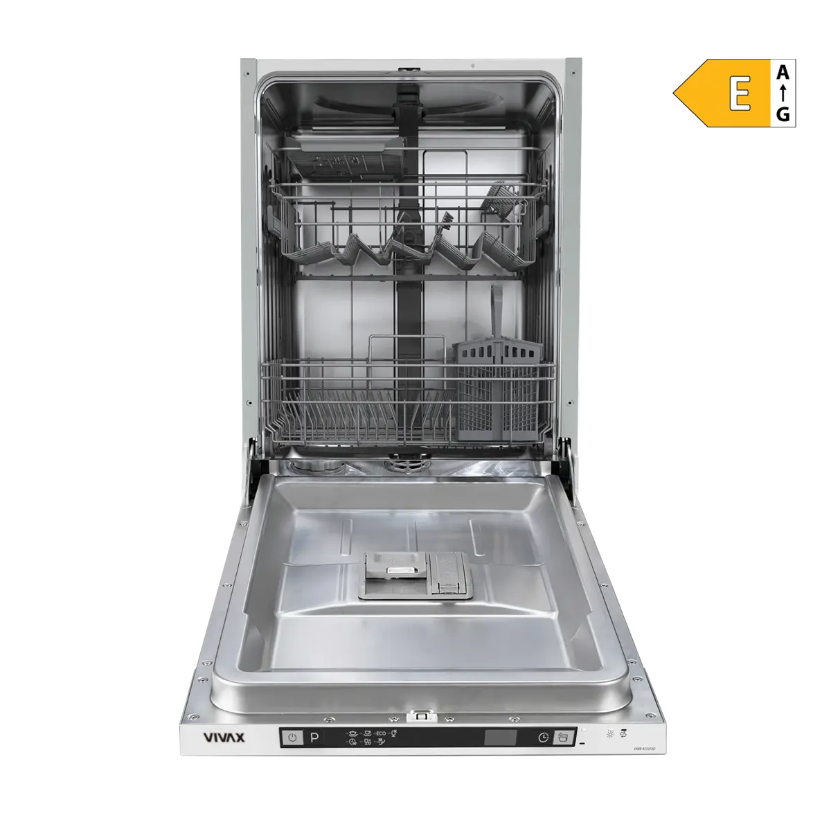 VIVAX ugradbena perilica posuđa DWB-451072D ima 7 programa pranja koji uključuju: "Intenzivno pranje" - program za jako zaprljano posuđe; "Brzi program - 60 minuta" i "Univerzalni program", "ECO" - program u kojem perilica radi najučinkovitije, uz optimalnu potrošnju energije i vode, "Čaše", Program "90 min", "Brzi program" te program "Ispiranje", kojim samo navlažite i grubo isperete posuđe koje će se prati kasnije.